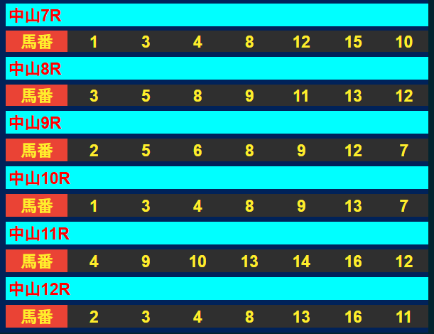 中山11R 3連単 4,820円的中