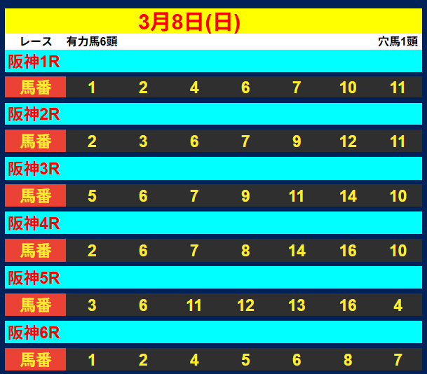 阪神9R 3連単 6,700円的中